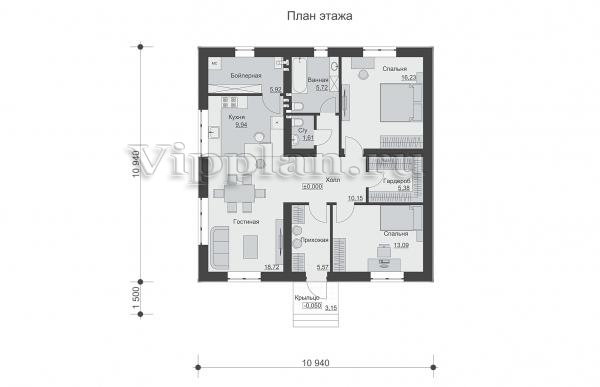 | Размеры дома: | 12.44м×10.94м |